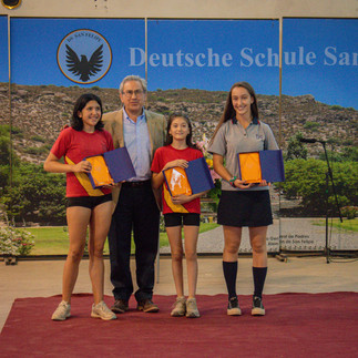 Además, en la ceremonia se recordó a nuestros dos funcionarios que lamentablemente fallecieron este 2024; Frau Jacqueline Caiseo Quiroga, psicopedagoga y miembro de esta comunidad por más de 30 años, y don Oscar Lazcano Núñez, nuestro querido auxiliar por 26 años, quién falleció en agosto pasado, dejando sin duda una huella en cada uno de los miembros de esta comunidad. Por ese motivo el Centro de Alumnos hizo entrega de una placa en su honor, la cual será instalada en el gimnasio, lugar muy especial para él, y así poder ser recordado siempre.